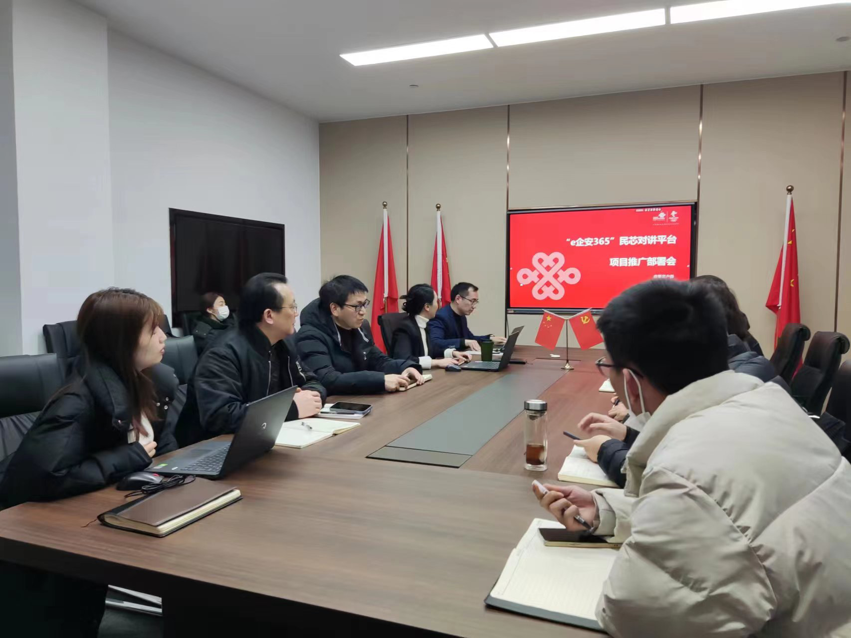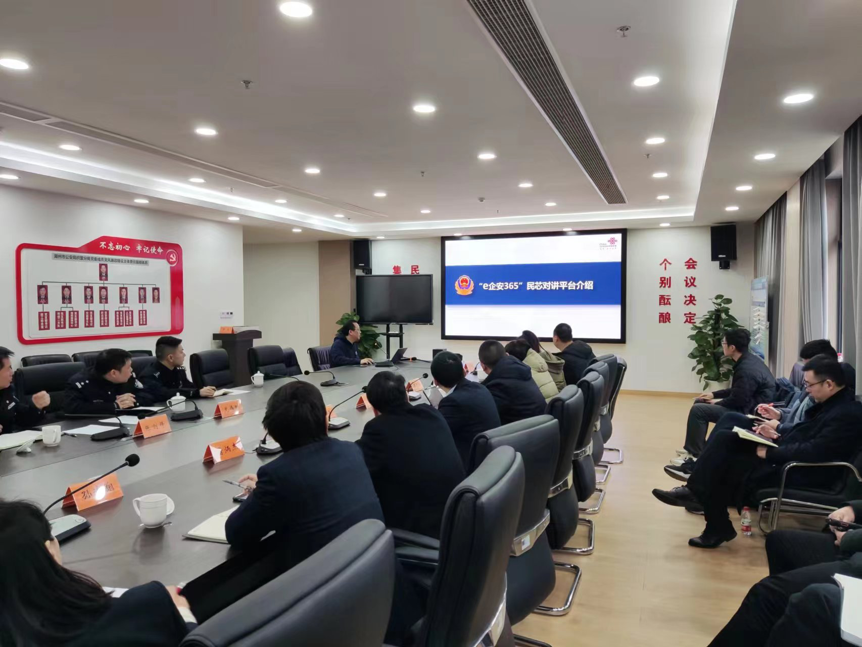 海高思市場(chǎng)團(tuán)隊(duì)與湖州市聯(lián)通召開針對(duì)“e企安365”民芯對(duì)講平臺(tái)項(xiàng)目的推廣部署會(huì)。